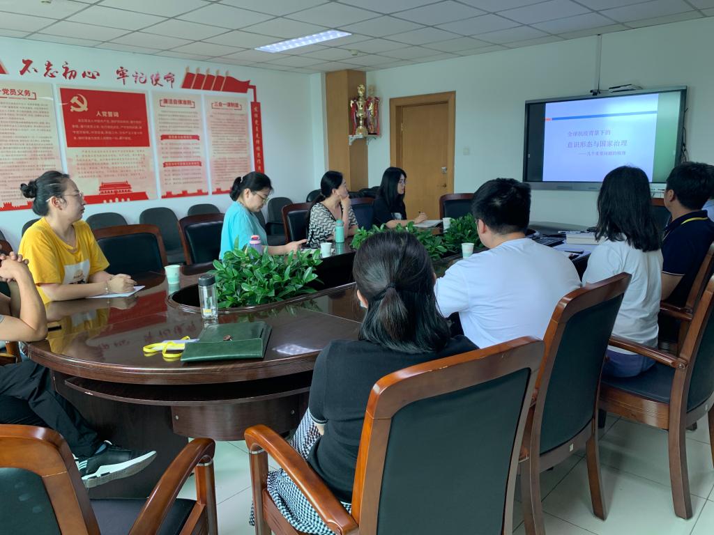 在活动中,郝建国首先带领大家从当前国内外疫情发展态势、疫情期间的中美关系、我国的应对措施等几个方面系统梳理了近半年来全球抗疫背景下国际国内形势的发展演变和在这个过程中我国沉着应对、化危为机、稳中求进的战略举措。随后,大家重点回顾学习了总书记在山西考察期间的重要讲话。重温总书记“坚持稳中求进总基调”、“牢固树立绿水青山就是金山银山的理念”、“坚持以人民为中心的发展思想”、“坚定不移加强党的领导和党的建设”等讲话内容及其深刻内涵。结合省委书记楼阳生在中北大学宣讲总书记重要讲话重要指示精神时的内容,大家讨论了高校在我省聚焦“六新”、转型发展、先行先试、蹚出一条新路过程中的任务和使命。