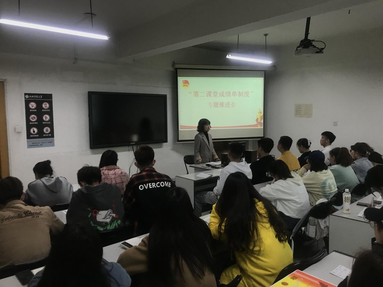 3月26日,必赢官网团委在科学会堂B-406召开了“第二课堂成绩单制度”专题推进会。全体学生干部及团支书参加了会议,文婷老师主持会议。